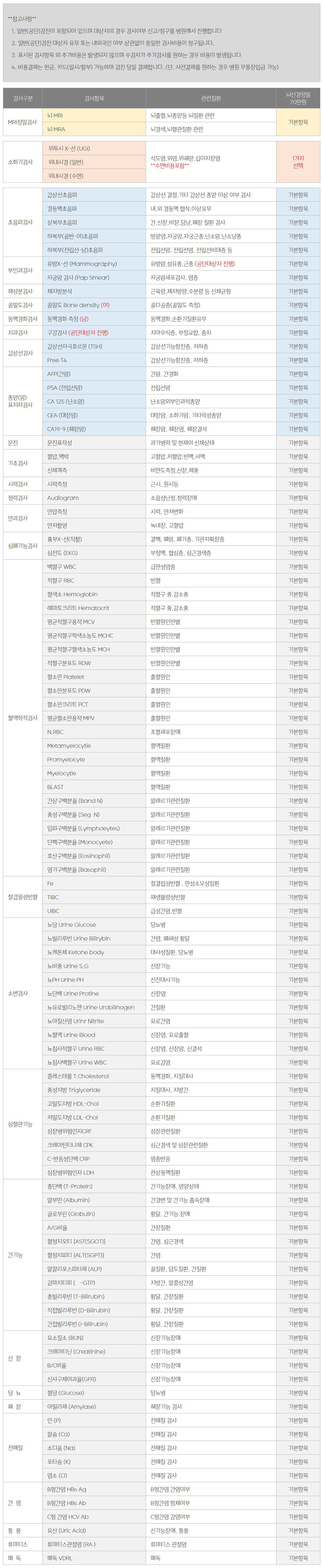 나의 몸에 맞는 검사항목을 찾아보세요!!