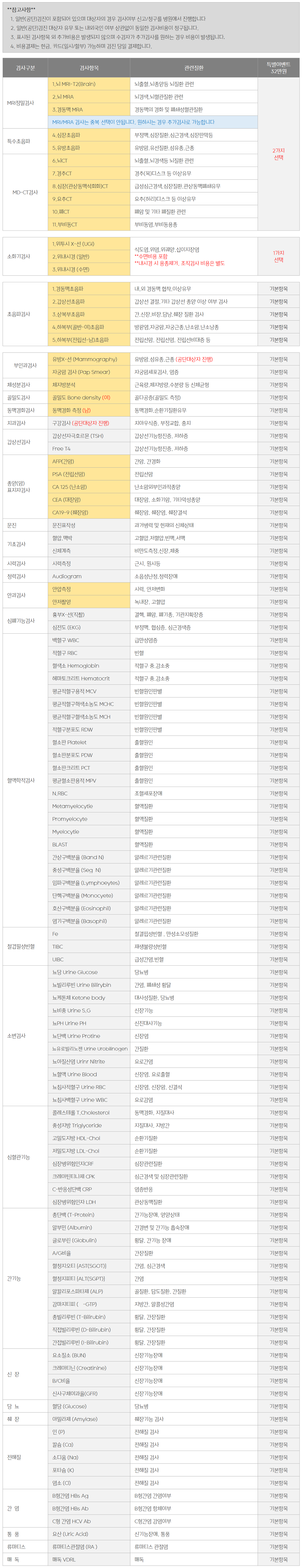 특별이벤트 종합검진 검사항목